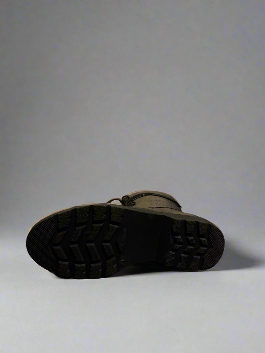 Built on a thick anti-slip rubber sole (approx. 1.5 inch / 3.8 cm sole height), these boots deliver excellent grip and stability on any surface. With a boot height of about 10 inches (25 cm), they give extended ankle and lower-leg support while adding a bold, timeless look that pairs perfectly with jeans, cargos, or outdoor gear.